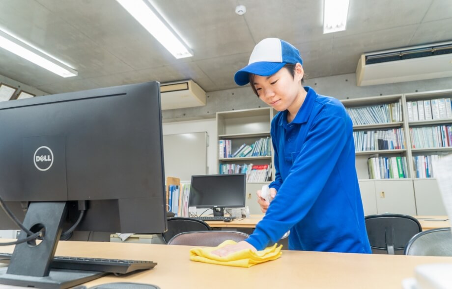床面やカーペット、ガラス、エアコン、排水管、貯水槽、ダクトなど、建物の設備や環境を対象とした清掃です。専用の機材と技術を用い、衛生的で快適な空間を維持するとともに、建物や設備の寿命を延ばし、利用者に安心できる環境を提供します。